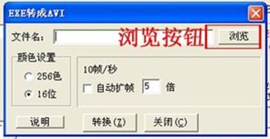 2、選擇“EXE/LXE轉(zhuǎn)換成AVI”選項(xiàng)進(jìn)入“EXE轉(zhuǎn)換成AVI”窗口,單擊“瀏覽”按鈕進(jìn)入“打開(kāi)”窗口,