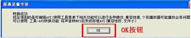 9、在壓縮轉(zhuǎn)換過(guò)程中,根據(jù)所轉(zhuǎn)換EXE視頻的大小不同,所需要的時(shí)間不同,耐心等待轉(zhuǎn)換完畢,進(jìn)行入“轉(zhuǎn)換成功”窗口點(diǎn)擊“OK”按鈕,即完成整個(gè)轉(zhuǎn)換過(guò)程,接下來(lái)就可以隨意使用新得到的AVI格式視頻了。
