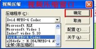 7、點(diǎn)擊“確定”后,進(jìn)入“視頻壓縮”窗口,在該窗口可以選擇要使用的壓縮程序,這里我們選擇“Xvid MPEG-4 Codec”,然后點(diǎn)擊“確認(rèn)”進(jìn)入“XVID編碼器圖像質(zhì)量設(shè)置”窗口。