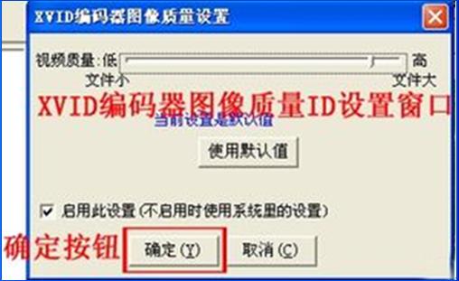 8、在“XVID編碼器圖像質(zhì)量設(shè)置”窗口我們可以對(duì)轉(zhuǎn)換視頻的質(zhì)量進(jìn)行設(shè)置,如果對(duì)視頻編碼不了解建議使用默認(rèn)值壓縮。然后點(diǎn)擊“確定”開(kāi)始?jí)嚎s轉(zhuǎn)換。