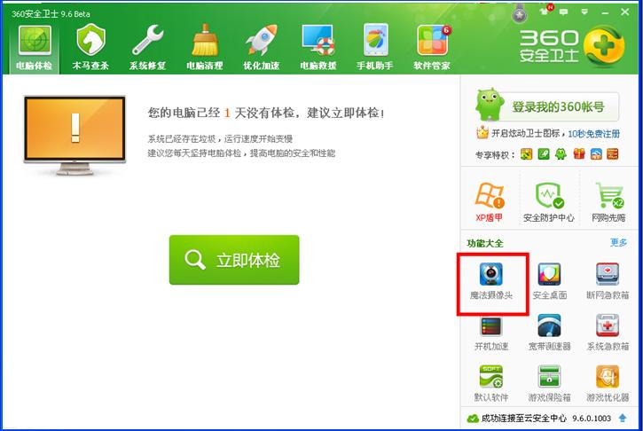 | Windows 7,中文名稱視窗7,是由微軟公司(Microsoft)開發的操作系統,內核版本號為Windows NT 6.1。Windows 7可供家庭及商業工作環境:筆記本電腦 、平板電腦 、多媒體中心等使用。Windows 7可供選擇的版本有:入門版(Starter)、家庭普通版(Home Basic)、家庭高級版(Home Premium)、專業版(Professional)、企業版(Enterprise)(非零售)、旗艦版(Ultimate)。 通常情況下,筆記本電腦安裝win7系統后,在“我的電腦”里是沒有攝像頭圖標的,那么win7系統筆記本怎樣添加攝像頭圖標?下面Win7系統之家給大家分享筆記本安裝電腦公司Win7旗艦版系統后添加攝像頭圖標的方法,此方法非常簡單,大家一起來學學吧。1、打開360安全衛士,在功能大全處可以看到有攝像頭的圖標,雙擊下就可以自動安裝了。 2、安裝完成后,在打開的攝像頭的界面的上方處有“在'我的電腦'中添加攝像頭圖標”,點擊下,就完成了。 3、打開“我的電腦“,可以看到攝像頭圖標已經添加上去了。下次使用就可以直接打開進行拍照了。 windows 7 的設計主要圍繞五個重點——針對筆記本電腦的特有設計;基于應用服務的設計;用戶的個性化;視聽娛樂的優化;用戶易用性的新引擎。 跳躍列表,系統故障快速修復等,這些新功能令Windows 7成為最易用的Windows。 |