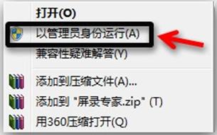 1、右鍵“屏幕錄像專家軟件”選擇以管理員身份運(yùn)行