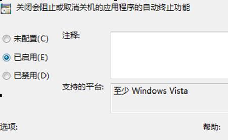 | Windows 7,中文名稱視窗7,是由微軟公司(Microsoft)開發(fā)的操作系統(tǒng),內(nèi)核版本號為Windows NT 6.1。Windows 7可供家庭及商業(yè)工作環(huán)境:筆記本電腦 、平板電腦 、多媒體中心等使用。Windows 7可供選擇的版本有:入門版(Starter)、家庭普通版(Home Basic)、家庭高級版(Home Premium)、專業(yè)版(Professional)、企業(yè)版(Enterprise)(非零售)、旗艦版(Ultimate)。 Win7系統(tǒng)使用過程中,經(jīng)常會遇到這樣一個問題, 關(guān)機的時候提示你沒有關(guān)閉的程序,需要你選擇關(guān)閉,之后才能關(guān)機,這樣會延誤你的關(guān)機時間,而且沒有什么必要,那么如何取消這個關(guān)閉程序提示功能呢?現(xiàn)win7系統(tǒng)之家給大家介紹win7系統(tǒng)中關(guān)閉程序提示功能,讓Win7關(guān)機更加流暢,具體如下:在“運行”中輸入“gpedit.msc”后按回車 ,如圖: 依次展開“計算機配置”→“管理模板”→“系統(tǒng)”→“關(guān)機選項”,如圖: 雙擊右側(cè)窗口中的“關(guān)閉會阻止或取消關(guān)機的應(yīng)用程序的自動終止功能”,如圖: ?選擇“已啟用”選項,并點擊“確定”即可 通過以上設(shè)置后,以后關(guān)機就會更加順暢,有需要的用戶請跟著以上步驟設(shè)置吧。 windows 7 的設(shè)計主要圍繞五個重點——針對筆記本電腦的特有設(shè)計;基于應(yīng)用服務(wù)的設(shè)計;用戶的個性化;視聽娛樂的優(yōu)化;用戶易用性的新引擎。 跳躍列表,系統(tǒng)故障快速修復(fù)等,這些新功能令Windows 7成為最易用的Windows。 |