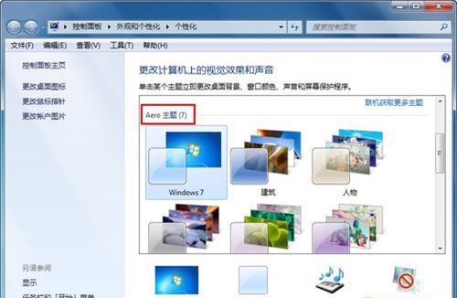 Win7的Aero特效在主題上也是有所體現的,如果主題本身不支持,那么Win7同樣無法實現Aero特效。在桌面點擊右鍵,選擇“個性化”。然后選擇Aero主題中的任意一款即可。更換支持Aero特效的Win7主題  如果問題出在這里,那么只要點擊要換的主題,任務欄和窗口馬上就會出現變化了。
