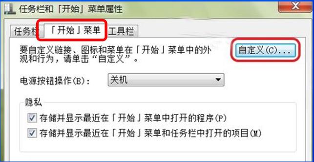 1、右擊Win 7桌面空白處,選擇“屬性”選項。出現的“任務欄[開始]菜單屬性”選擇“[開始]菜單”選項,點擊“自定義(C)”按鈕。