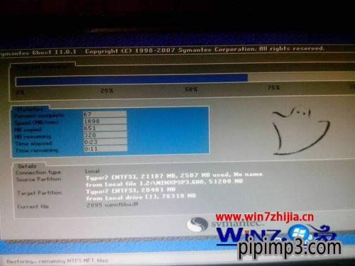 2、于是我就不停的重啟電腦,大概經(jīng)歷了半個(gè)小時(shí)左右,終于按下操作系統(tǒng)里的選擇項(xiàng),一鍵ghost居然被我進(jìn)去了;