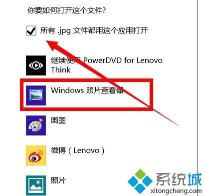 3、點擊“打開方式”選擇打開方式中的“windows照片查看器”的選項,就是我們在XP系統中常常用來瀏覽圖片的那個應用,簡單實用。我們也可以把它設置為默認圖片查看應用;