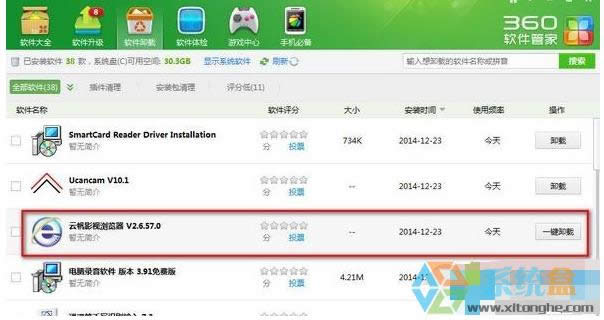 二、除了手動卸載,我們也可以通過像360軟件管家這樣的安全衛士輔助卸載,這些軟件在卸載時會幫我們自動刪除卸載殘留,十分的方便。