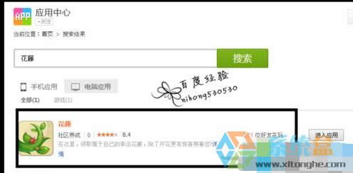 2、在【應用中心】頁面的右側,有一個搜索的導航欄,將【花藤】輸入之后,點擊右側的“搜索標志”進行搜索。