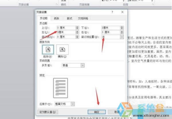 2、進入頁面設置以后,把紙張大小設置為:A4紙,頁邊距:上下左右都設置為3厘米。