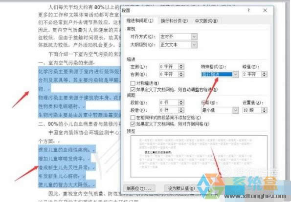 8、按住CTRL,選中文檔中的4、5、6、9、10段落,右擊鼠標,點擊段落,設置特殊格式:首行縮進2字符