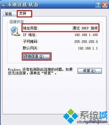 6、選擇支持,確認(rèn)地址類型為 通過(guò)DHCP指派,點(diǎn)擊詳細(xì)信息;